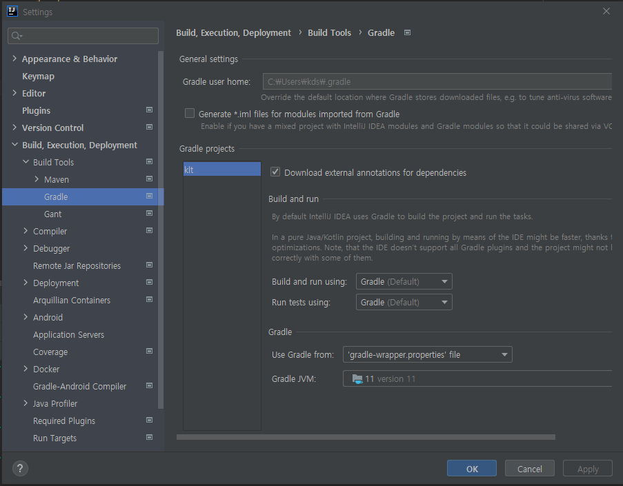 Gradle을 쓰고있었는데 settings > Build, Executin, Deployment > Gradle > Gradle JVM 설정이 변경이 안됐었다.