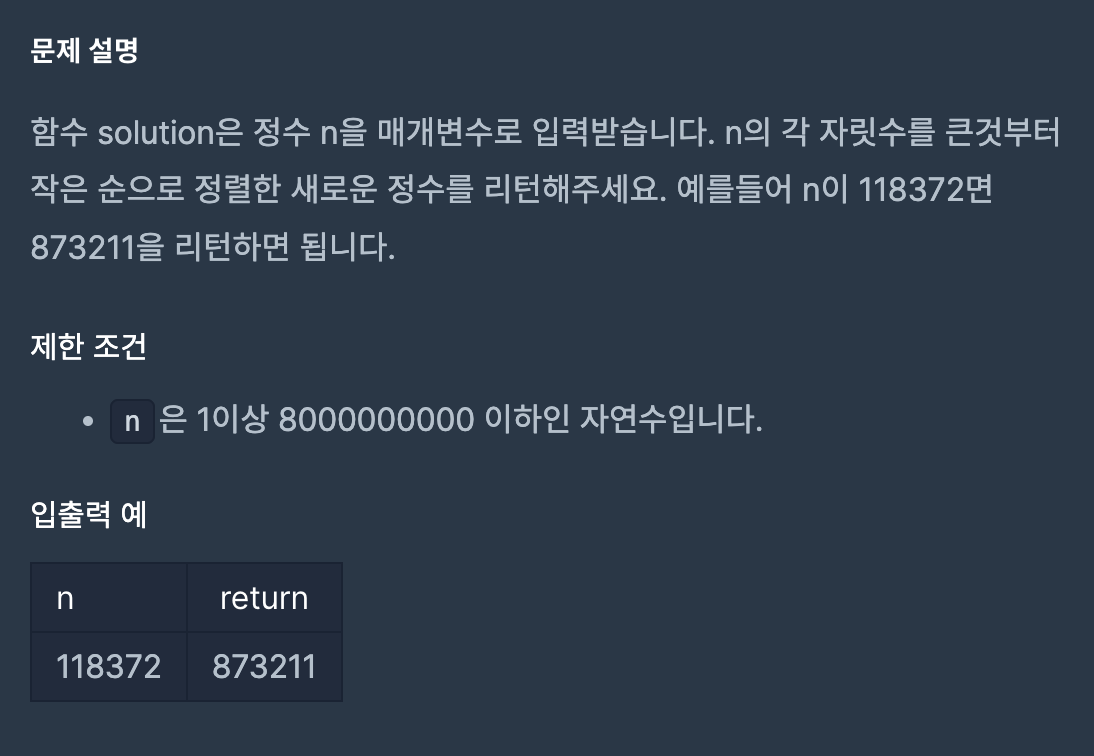 | Programers - 정수 내림차순으로 정렬하기 (0) | 2024.08.04 |