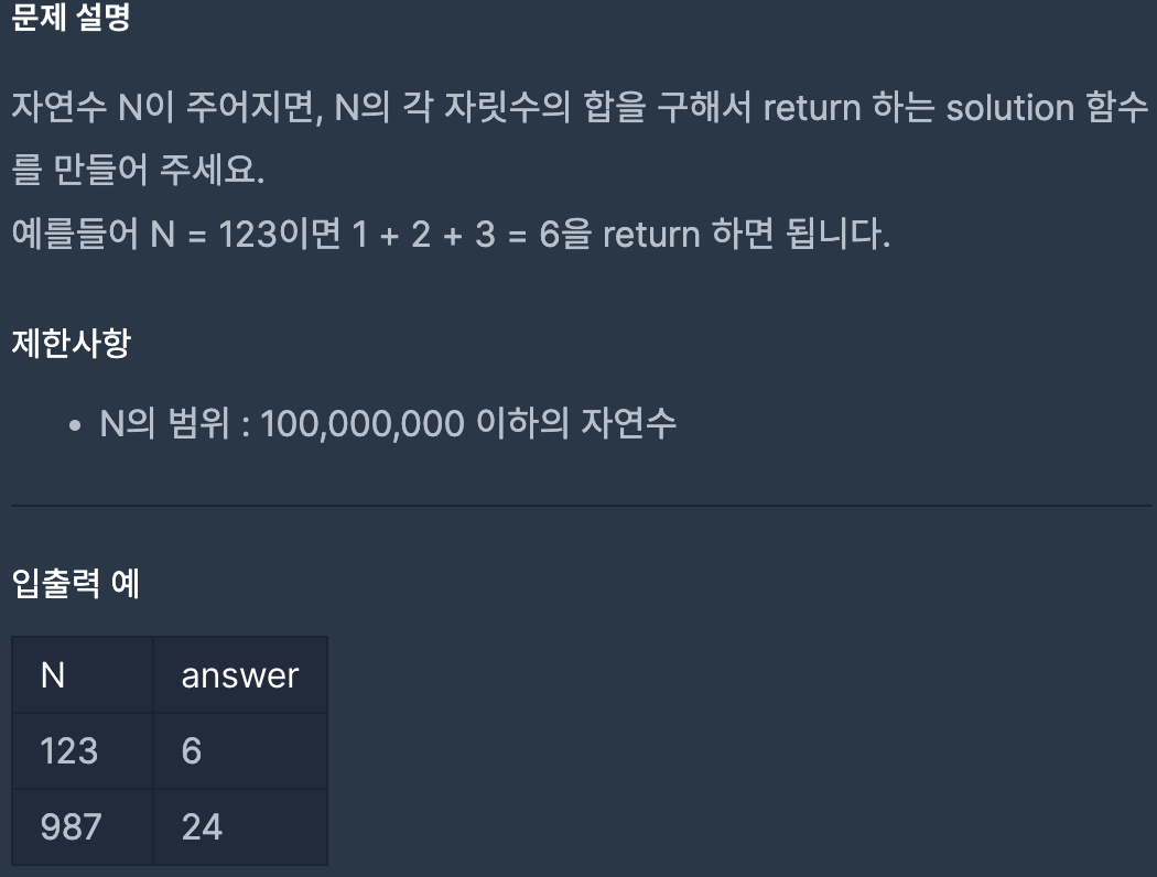 | Programmers - 자릿수 더하기 (0) | 2024.08.04 |