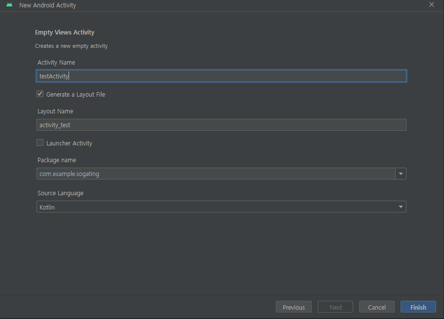 이때 Activity Name 과 Layout Name을 잘 맞춰야한다